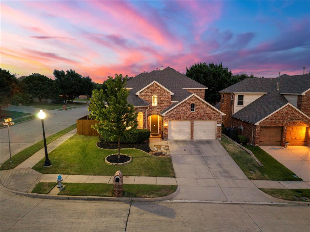 MOTIVATED SELLER! Luxurious Corner-Lot Beauty in Wellington Estates! Welcome to this absolutely stunning home nestled on a spacious corner lot in the highly sought-after Wellington Estates community in Flower Mound. Boasting incredible curb appeal, this beautifully maintained property features mature trees, a huge backyard, and an upgraded board-on-board fence for privacy. Enjoy entertaining or relaxing on the extended back patio, perfect for outdoor gatherings under the shade of the trees. Step inside and be greeted by soaring ceilings, large windows that flood the home with natural light, and an open, airy layout. With four generously sized bedrooms and three and a half bathrooms, there’s room for everyone. The front flex space is ideal as a formal dining room, second living area, or even a home office. At the heart of the home is a chef’s dream kitchen—featuring an enormous island, granite countertops, luxurious appliances, butler’s pantry, and an oversized walk-in pantry. Built-ins throughout add style and function. The living room is warm and inviting, with wood flooring and plenty of natural light. The spacious primary suite is conveniently located on the first floor and includes a spa-like bathroom retreat. Also downstairs are a guest powder bath and hallway built-ins for extra storage. Upstairs, a secluded game room can be closed off for noise control or privacy—ideal for movie nights or quiet relaxation. Three large secondary bedrooms are also upstairs—one with an ensuite bath, and the others sharing a well-appointed bathroom. Additional features include plantation shutters throughout, upgraded carpet, newer roof, newer HVAC units, water heaters, and window glass—offering peace of mind and energy efficiency. Wellington Estates offers top-notch community amenities and a lifestyle of comfort, convenience, and class. This is not just a home—it’s a retreat...come see it TODAY!