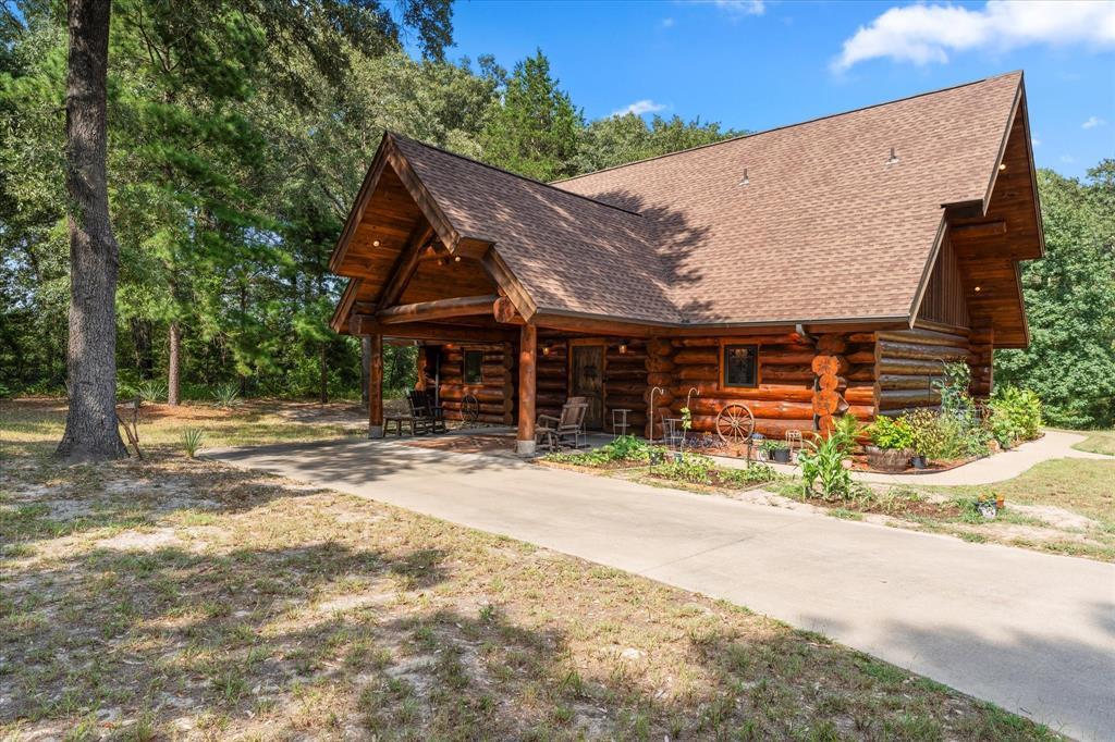 IMAGINE A WOODLAND SANCTUARY where barn swallows herald a new day & fireflies frolic among the evening shadows beneath a starlit canopy. A mere 90-minutes from Dallas & 20 minutes from Lake Fork, this charming 2+ ac estate lies at the end of a country lane in the majestic East Texas piney woods. Beyond the Priefert Ponderosa fence, a concrete driveway escorts you to the stately portico of this authentic chalet-style dwelling. Unlike common mass-produced log homes, the nearly 2,500 sf structure was built to last by master craftsmen utilizing the custom Scandinavian full-scribe method featuring saddle-notched corners. Upon entering the mahogany Speakeasy front door, you are greeted by white pine walls, a custom log staircase, alluring hand-blown light fixtures & large double-paned Geld-Wen casements. No need for curtains, drapes or blinds here, as these windows showcase your own private forest! The spacious kitchen hosts an abundance of Shaker-style walnut cabinetry flanked by two pantries & graced with stainless steel appliances, Olympic River granite countertops, onyx backsplash, & undercounter composite granite double sink, oil-rubbed bronze fixtures plus an island crowned with Minnesota red pine. From the great room you can withdraw into the Master which features an ensuite bath accentuated with hand-made cabinetry, a slate shower & stained-glass window. Upstairs, the spacious loft is bordered by rustic wood railings overlooking the living area. To the side is a 12 ft closet & bath with shower, plus a therapeutic spa tub in which to relax body& mind. Indoor comfort is delivered year-round by two reliable energy-efficient Goodman heat pumps ($135 avg. mo. electric bill). Utilities are underground, including high speed fiber optics. Outdoor protection with durable Timberline shingles and a gutter guard filter system. The property features 1200 sf garage-shop with built-ins & 200-amp service, 8-stationirrigation system & RV hookups with 30-amp service.